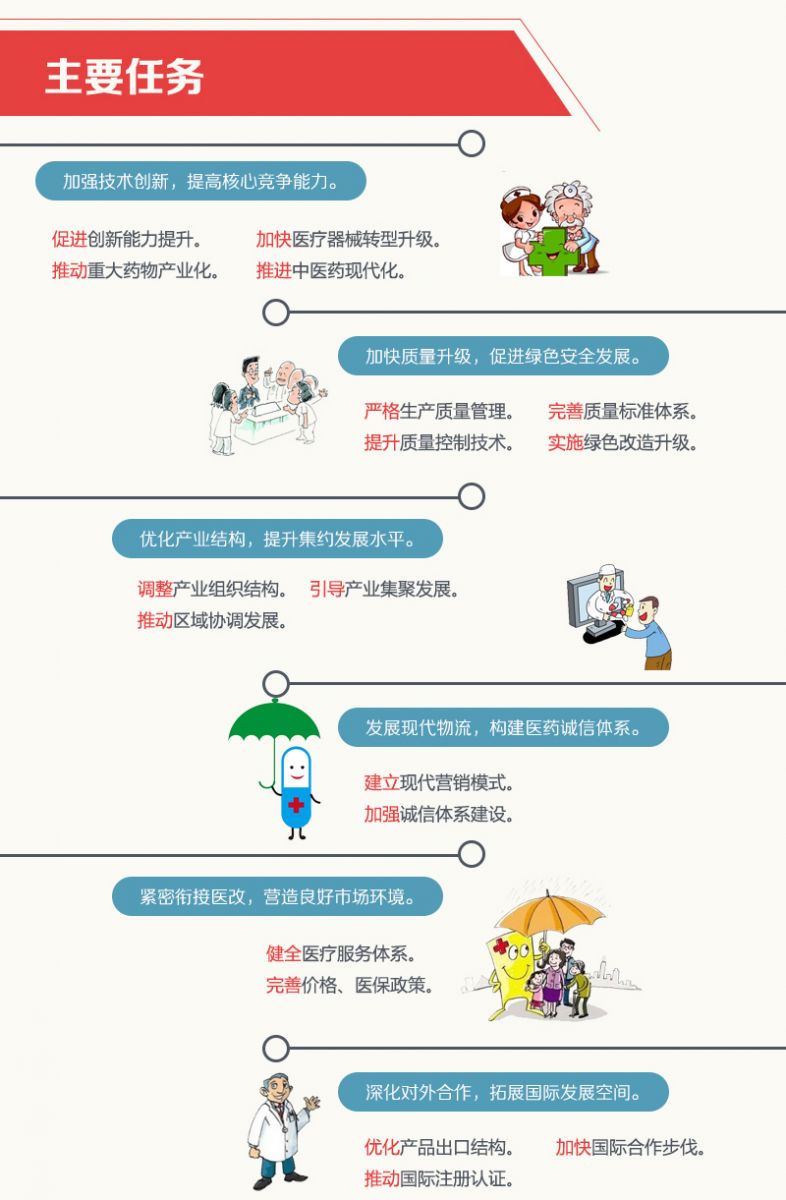 尤為重要的是,該《意見(jiàn)》在原研藥、中藥等醫藥門(mén)類(lèi)的提升提出了發(fā)展綱要,在研發(fā)、生產(chǎn)、質(zhì)檢、國際臨床研究和和注冊方面提出了指示。并對醫療器械的研發(fā)和轉型升級,和醫療器械生產(chǎn)商的兼并重組提出了要求。在研發(fā)基礎設施建設方面提出了:優(yōu)化科技資源配置,打造布局合理、科學(xué)高效的科技創(chuàng )新基地。意在強化我國醫藥及醫療生產(chǎn)企業(yè)的研發(fā)與生產(chǎn)能力。